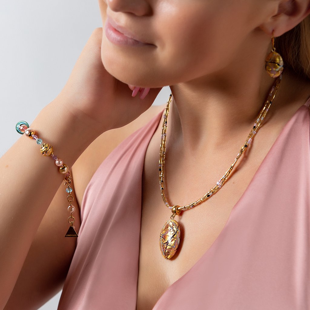 | specjalne zdobienie pereł Lampglas: | 24-karatowe złoto z czystym srebrem i designową kompozycją z gorącego szkła |