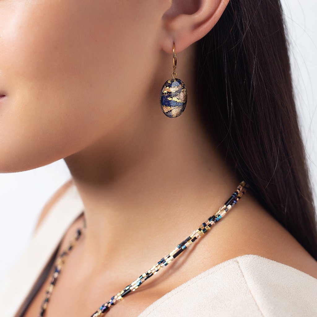 Piękne wiszące kolczyki wykonane z pereł Lampglas oczarują Cię atmosferą pachnącego morzem i słońcem Egiptu.