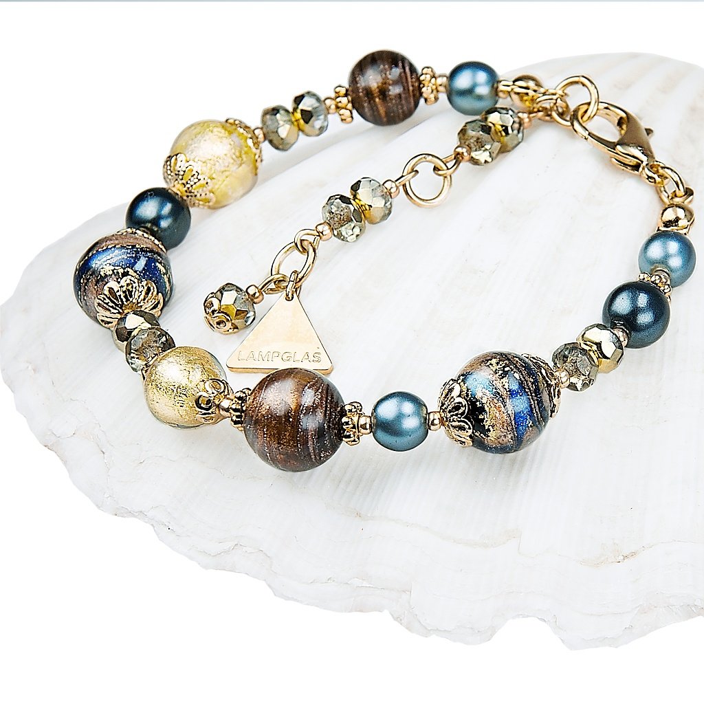 Luksusowa bransoletka wykonana z pereł lampowych z czystym złotem, kryształem i awenturynem. Niech aromat morza i piaszczystych plaż Egiptu otoczy Twój nadgarstek.