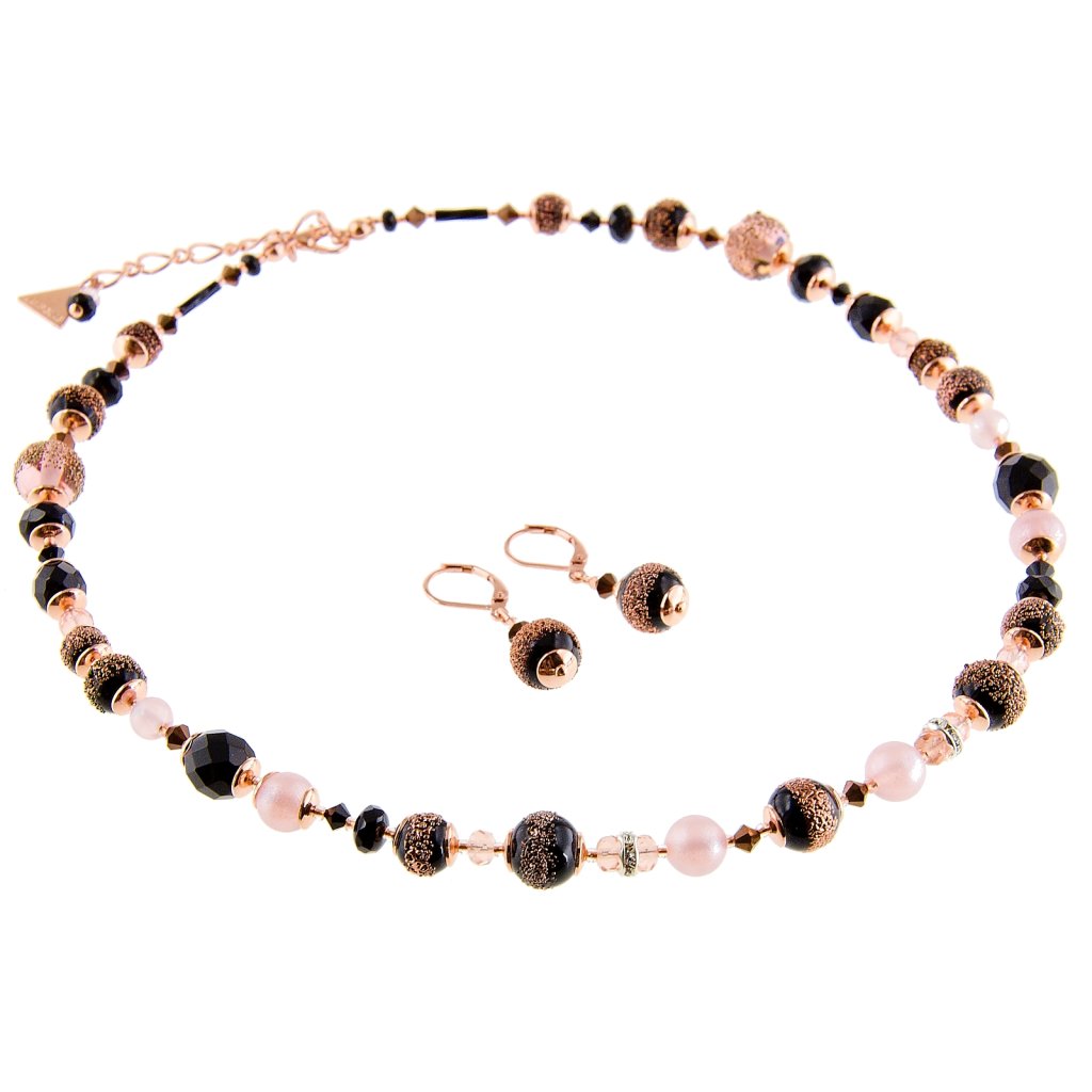Komplet luksusowej biżuterii dla miłośniczek świeżości i oryginalności. Ten zestaw składający się z naszyjnika i kolczyków ozdobionych za pomocą techniki cukrowania, będącej strzeżoną tajemnicą produkcyjną naszej firmy, zagwarantuje Ci absolutną wyjątkowość.