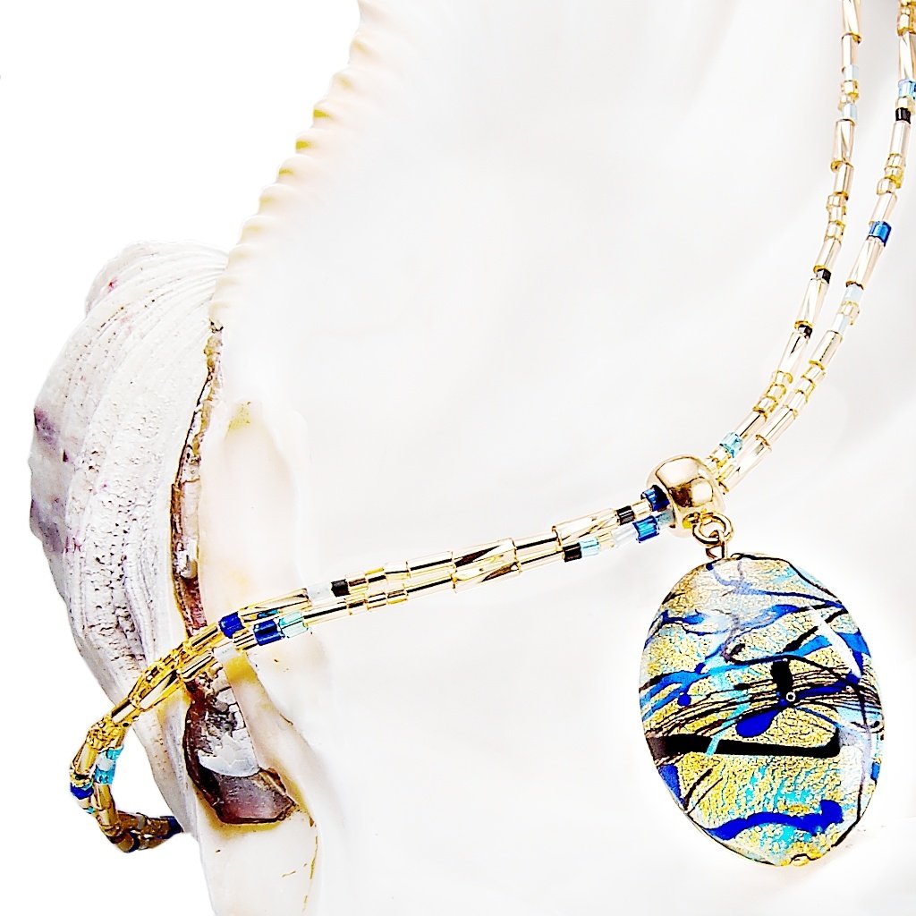 Naszyjnik damski Blue Spy z 24-karatowym złotem w perle Lampglas