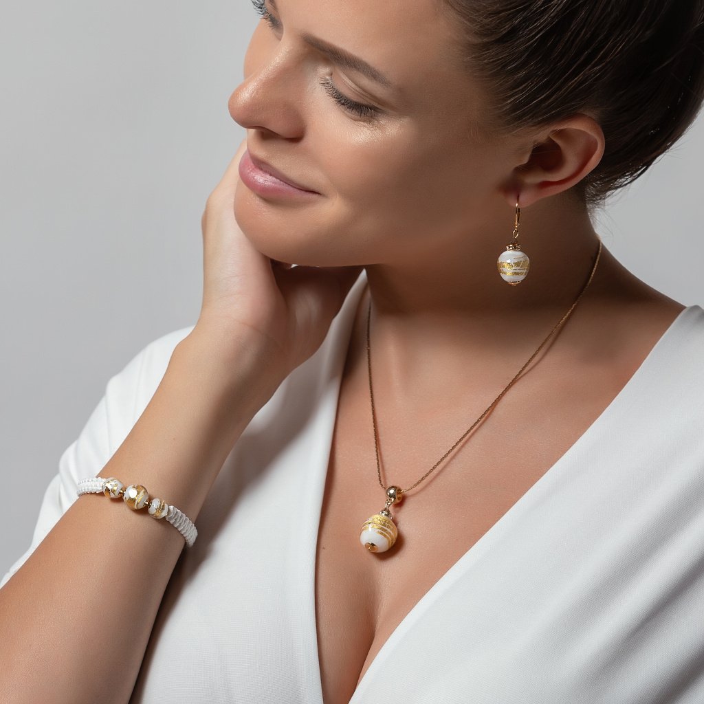 | specjalne zdobienie perły Lampglas: | 24-karatowe złoto z unikalnym rysunkiem z gorącego szkła w czeskim krysztale |