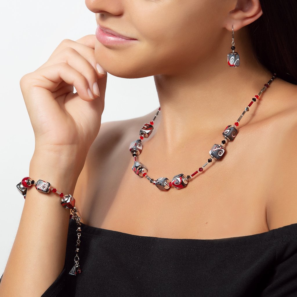 Pełen namiętności naszyjnik ze szklanymi kostkami w mocnych odcieniach, które przyspieszą bicie Twojego serca.