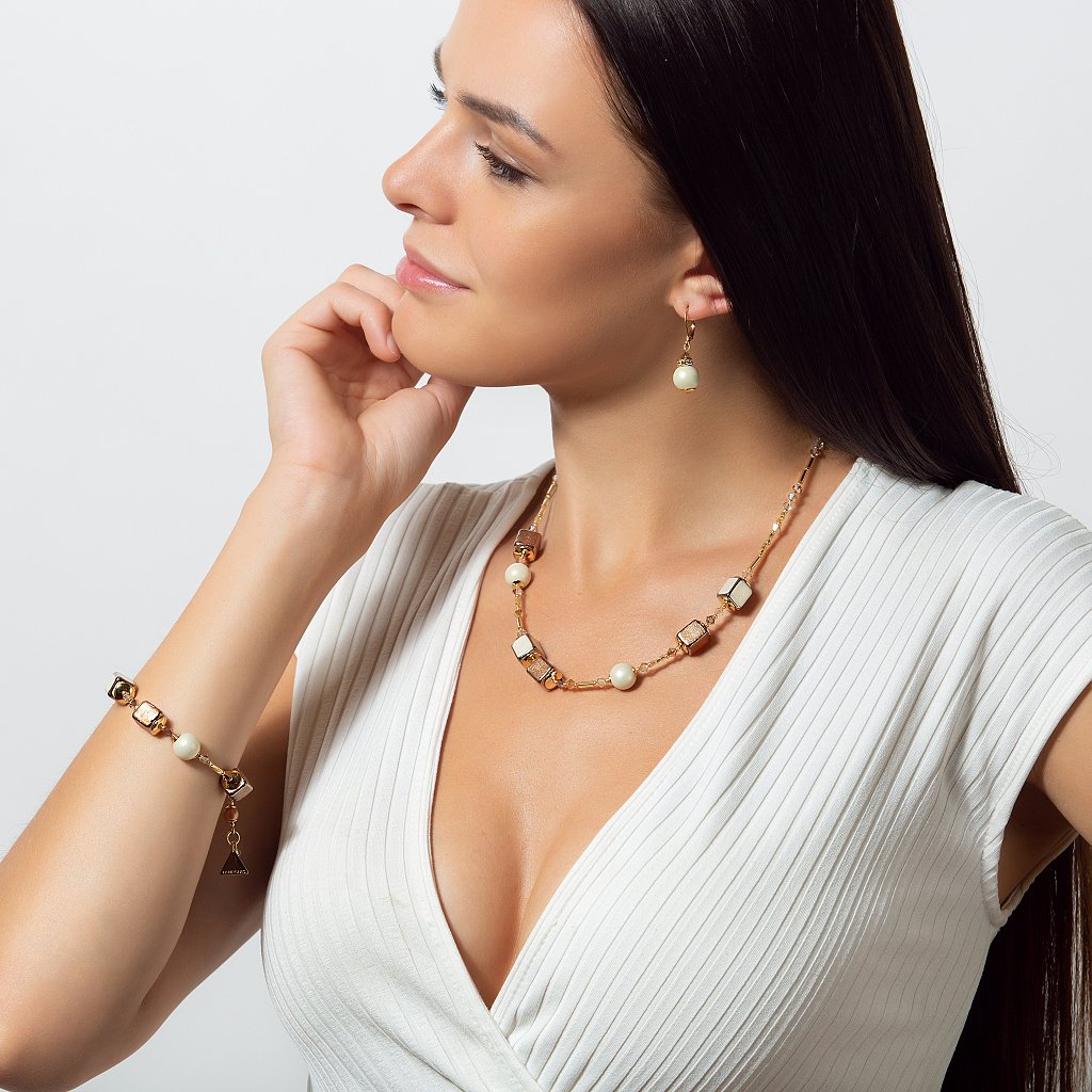 Subtelny naszyjnik ze szklanymi kostkami, ozdobionymi linią wzorniczą – na odświętną okazję i na co dzień.