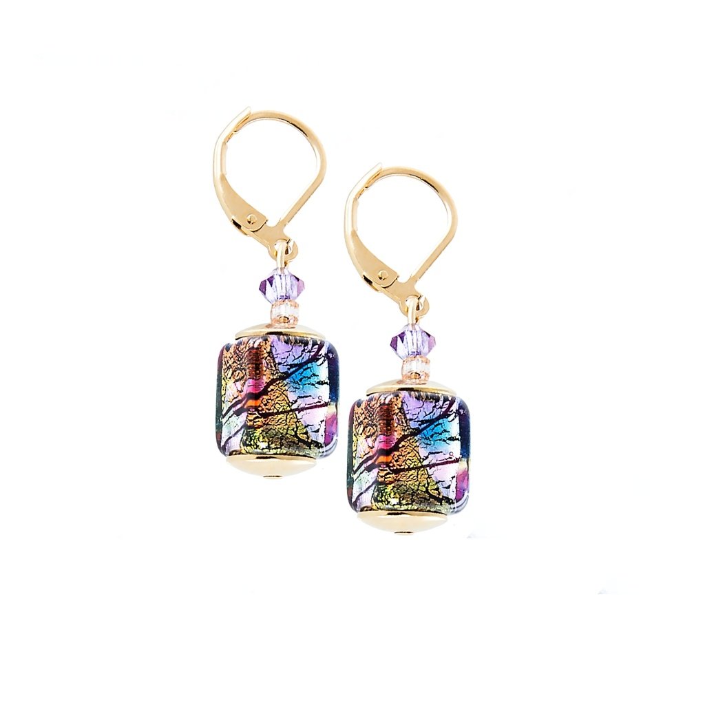 Luksusowe kolczyki wykonane ze szklanych kostek o zapierających dech w piersiach kolorach, ozdobione szlachetnymi metalami, od których zakręci Ci się w głowie.